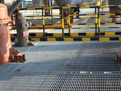 化工廠用鋼格板 鋼格板是用承載扁鋼和橫桿按照一定的間距進行正交組合,通過焊接或壓鎖加以固定的開敞式鋼構件;橫桿一般采用經(jīng)過扭絞的方鋼、也可采用圓鋼或扁鋼,材質分為碳鋼和不銹鋼鋼格板主要用來做鋼結構平臺板、溝蓋板、鋼梯的踏步板、建筑物吊頂?shù)取? 簡介 ···
